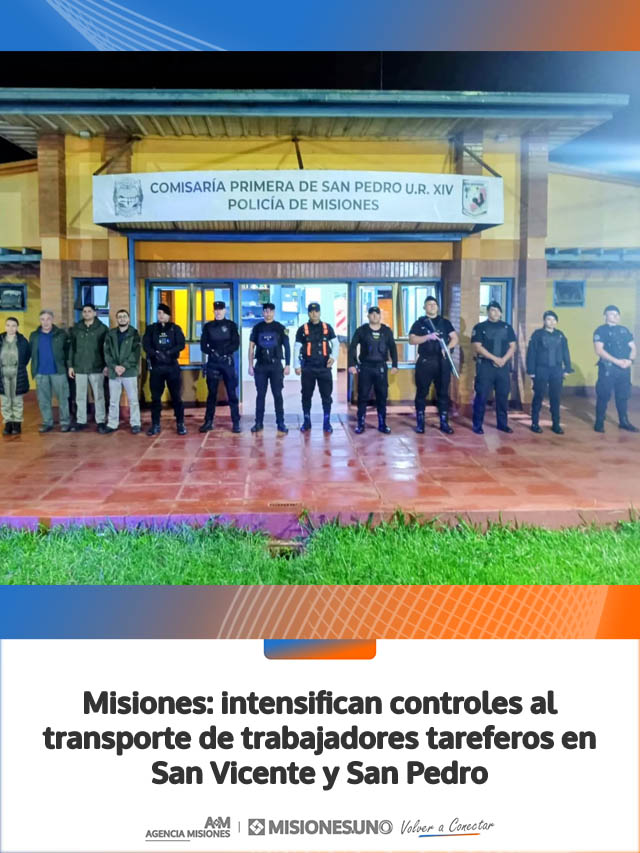 AGENCIA MISIONES.UNO | El Ministerio de Trabajo y Empleo de Misiones, en conjunto con la Policía provincial, llevó adelante operativos de fiscalización del transporte de trabajadores rurales en las localidades de San Vicente y San Pedro.